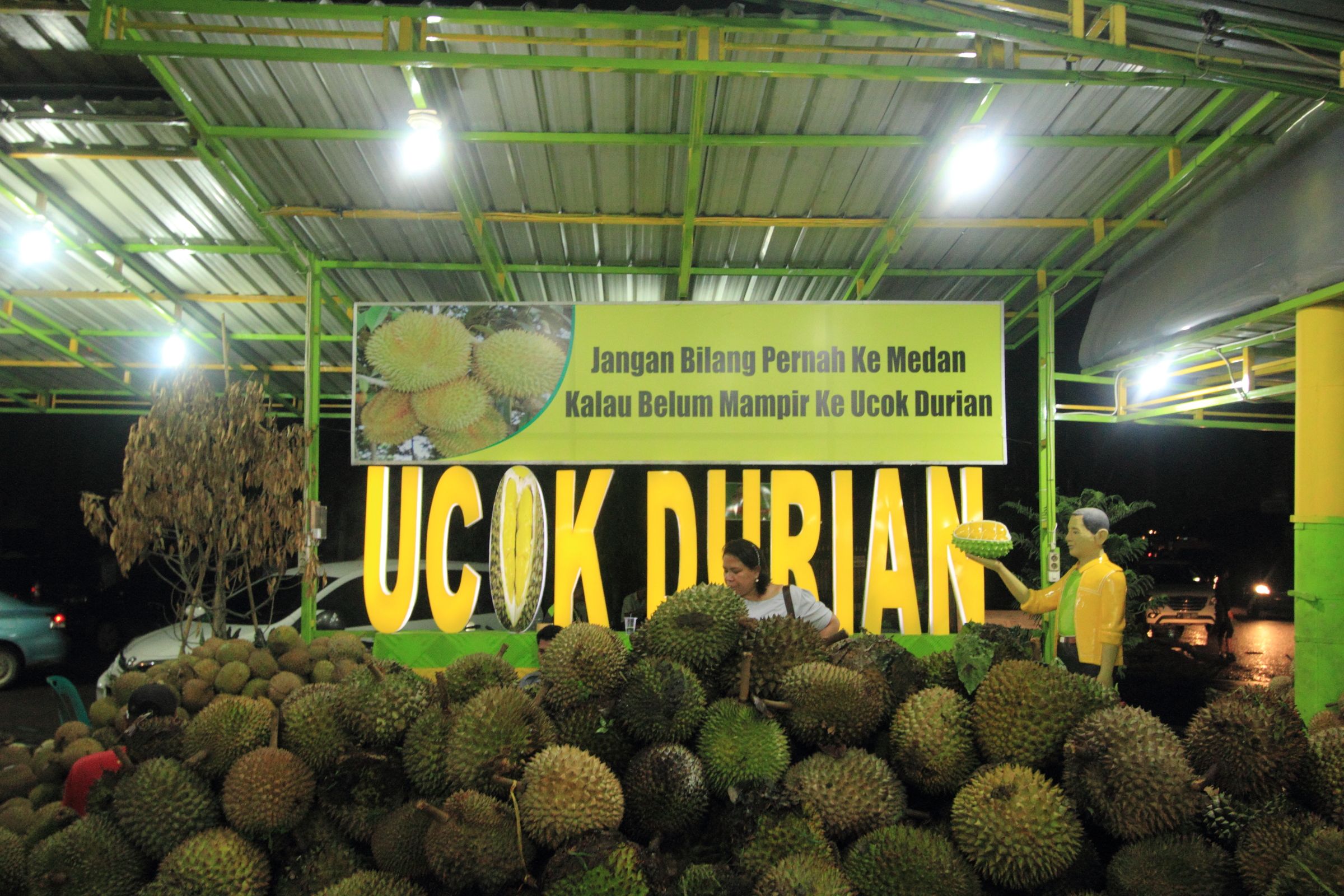 2. Ucok Durian, siapa disini yang suka durian, ayo angkat tangan. Kalau ada 10 tangan, kesepuluh tangan saya akan saya angkat. Yes, I am on of them. I am a durian addict. Berkunjung ke durian ucok bukan pertama kali bagi saya. Tapi bagi suami saya. Seperti motonya durian ucok "Jangan bilang pernah ke Medan, kalau belum pernah ke Ucok Durian". That's why, Kami harus ke sana. Just that simple reason. Rasanya ucok durian mungkin gak jauh berbeda dengan durian2 kebanyakan di MEDAN (kalau dijakarta pasti jauh beda ya rasa duriannya, gak enak). Yang membedakan, servicenya. Durian dipilih mereka, dikupas, disajikan dan boleh diganti sampai dapat yang cocok dengan lidah kita. Yap, itulah mengapa harganya cukup mahal di kantong (tapi tetap jauh lebih mahal dijakarta, bisa 3 kali lipatnya tapi rasanya ampun deh....). Beberapa kali ke Medan, sebenarnya kami ingin mampir ke ucok durian, Tapi karena saat itu benar2 masih menyusui, ditahan dan ditahan (hampir 3 tahun loh tidak menikmati buah ini dengan serakus kemarin, upsss.....). Karena Jessica sudah pada tahap menyapih, boleh ya makan sepuasnya.And You know what, setelah makan durian, Jessica nen, gatal2 mulai muncul di mata, badan dan tangannya. Hal yang paling menyedihkan mengetahui anakmu alergi dengan durian dimana kau adalah penikmatnya yang sungguh2. Di sabtu siang, inang mertua membawa durian lagi. Disitu belum sadar juga, Jessica alergi durian. Kita kira gatal2 karena cuaca, obat atau serangga. Alhasil, hari Minggu di gereja, Jessica gatal2 lagi. Hmmmm......